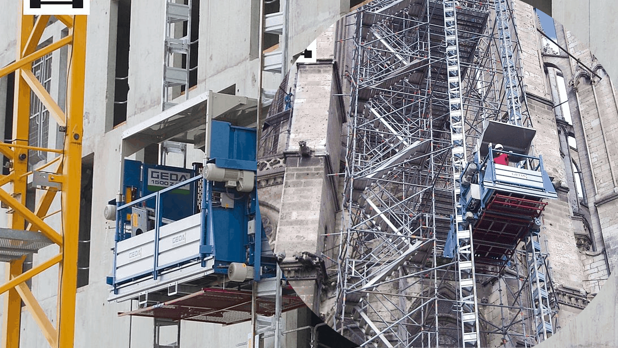 The GEDA 1500 Z/ZP unites two different machines in one: a hoist for materials with a load-bearing capacity of 2000kg and a transport platform for people and goods.
